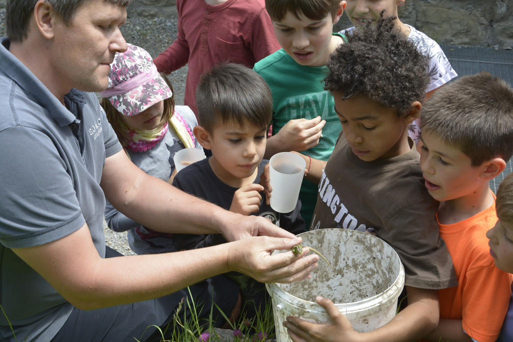 Die Väter der Schüler brachten sich ein – hier zeigt Olaf Isele eine Eidechse – soeben gefangen.
