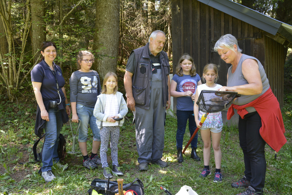 Der Lustenauer Naturwächter beim Unterricht in freier Natur mit Lehrerin Maria Hämmerle (rechts) und Karin Rinderer (links).