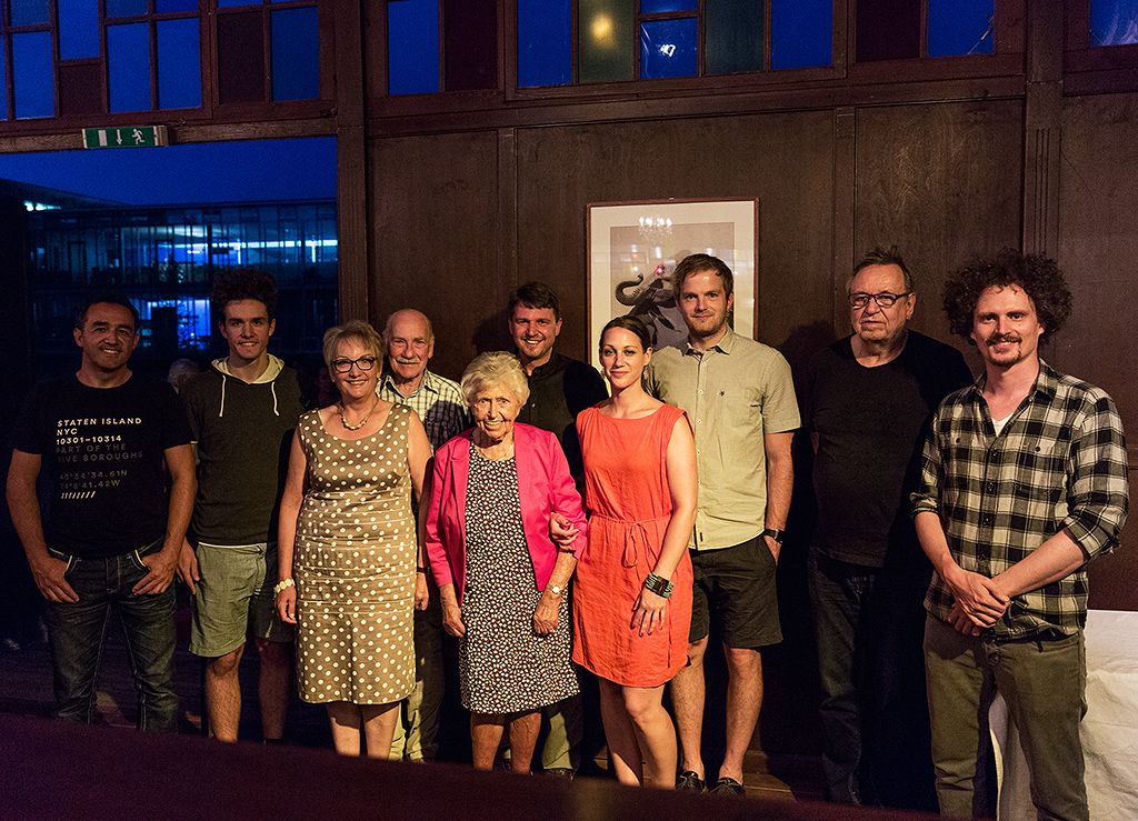 Das Team rund um App und Abend: v.l.n.r.: Projektinitiatoren Benno und Matteo Kofler, Veronika und Otto Hofer, Sieglinde Fitz-Grabher, Bürgermeister Kurt Fischer, Organisatorin Sabrina Stimpfl, Arkulpa-CEO Stefan Walkner, Ulrich Gabriel und Bernhard Belej vom TonZoo.