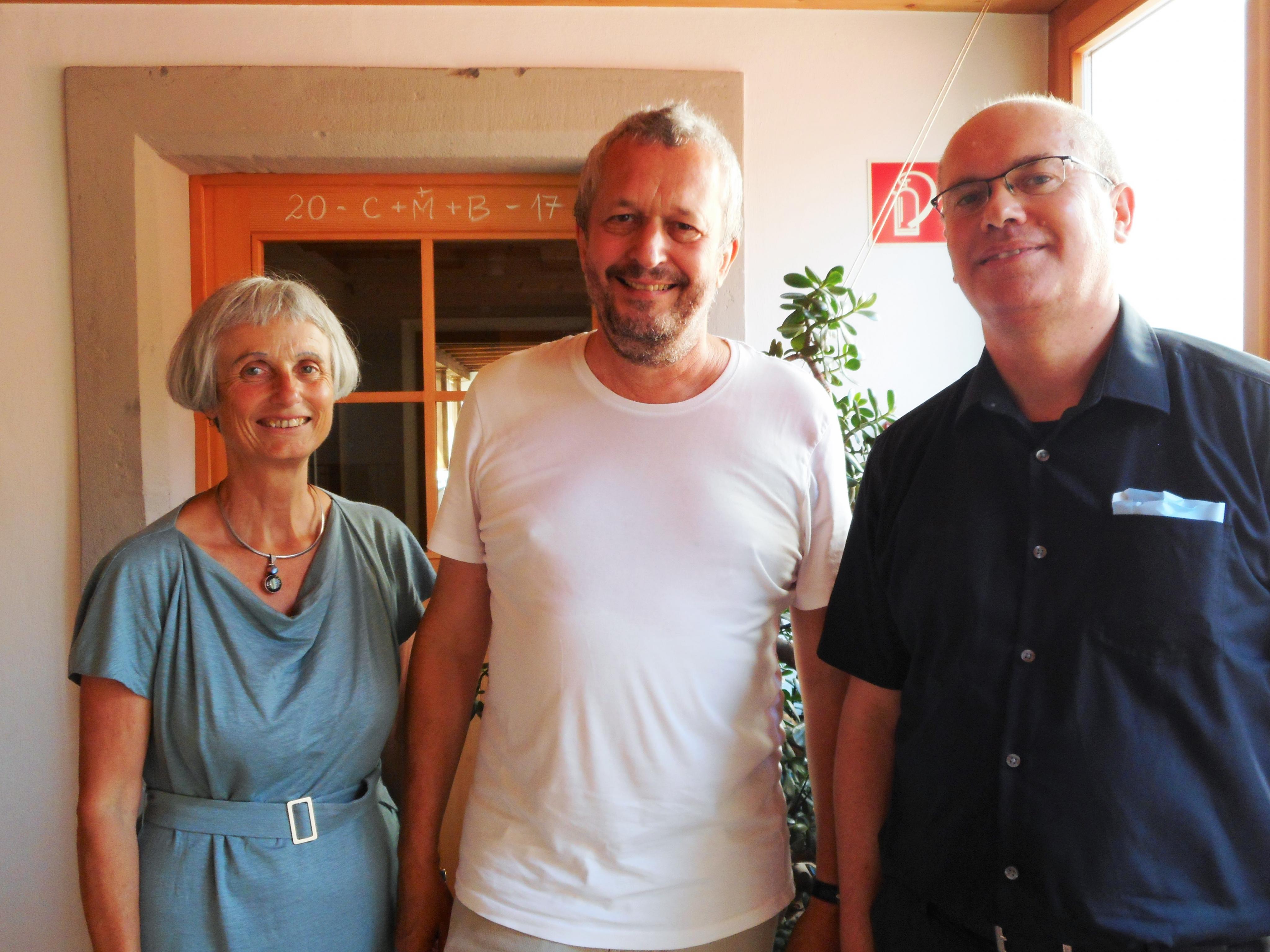 Markus Hofer (Mitte) mit zwei OrganisatorInnen der Palais Gespräche, Jutta Gnaiger-Rathmanner und Hans Gruber.