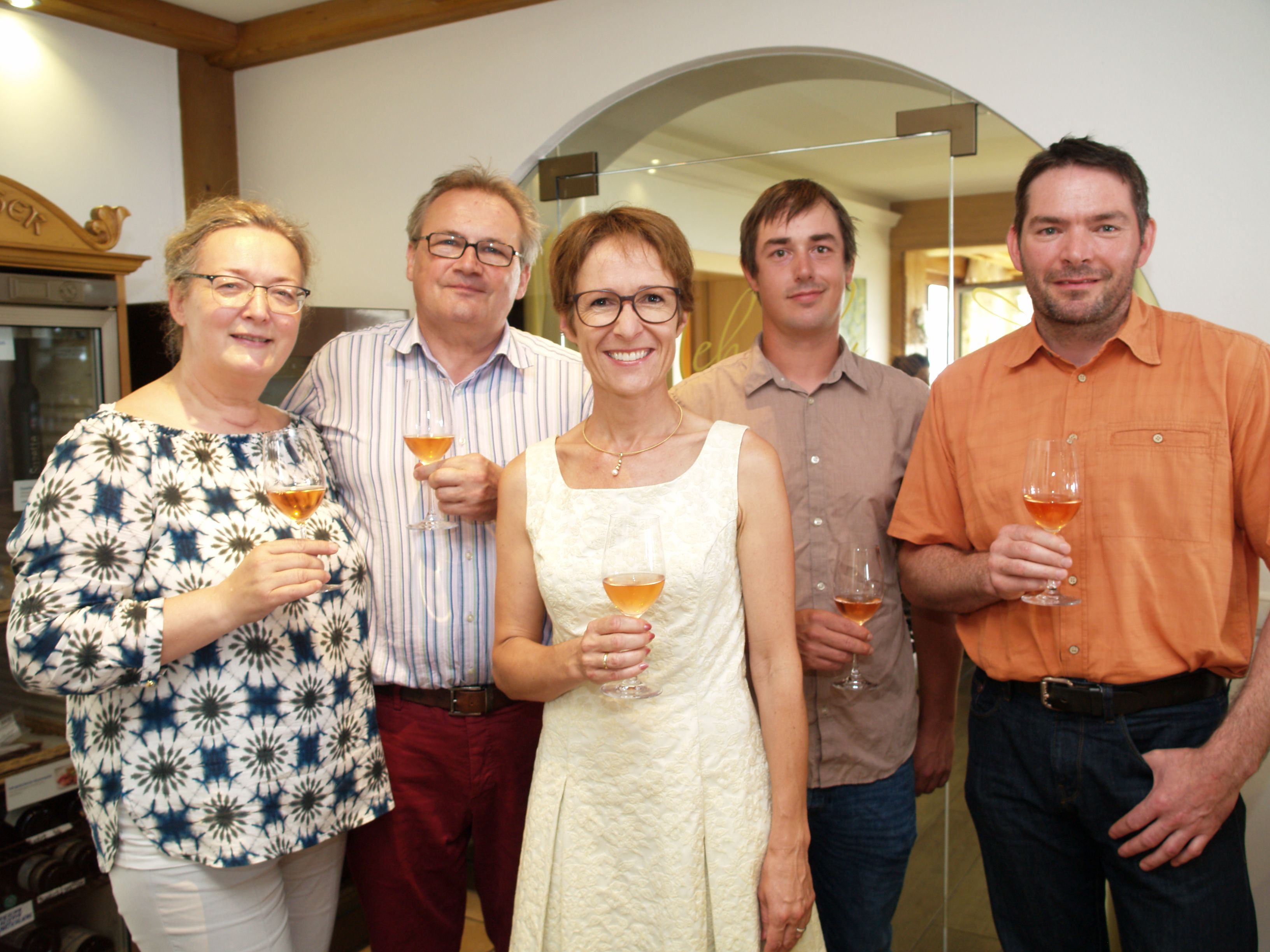 Monika und Karlheinz Hehle, Projektleiterin Angelika Stöckler, Jungwinzer Michael Nachbaur und Georg Stadler