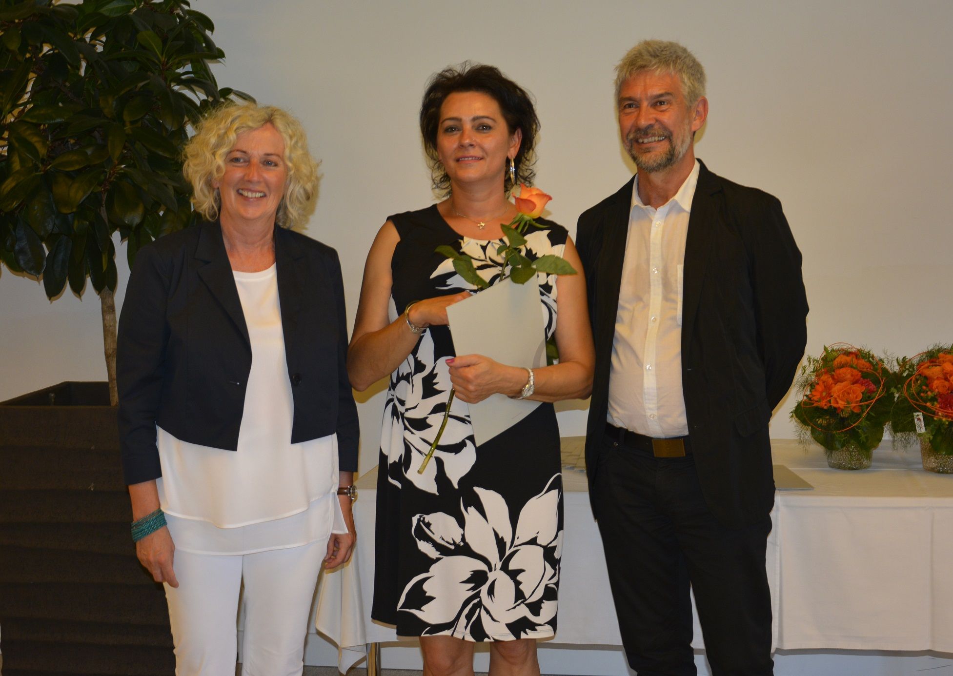 Lehrgangsleiter Wilfried Feurstein und LR Katharina Wiesflecker übergeben die Zertifikate.