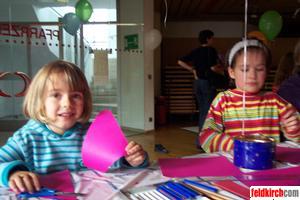 Am Weltspartag konnten zahlreich Kinder in den verschiedenen Sparkassen im Bezirk Feldkirch nicht nur das "Kässile" leeren, sondern auch malen, basteln und kneten zusammen mit Spielpädagogen. Bild: Olivia und Ramona.