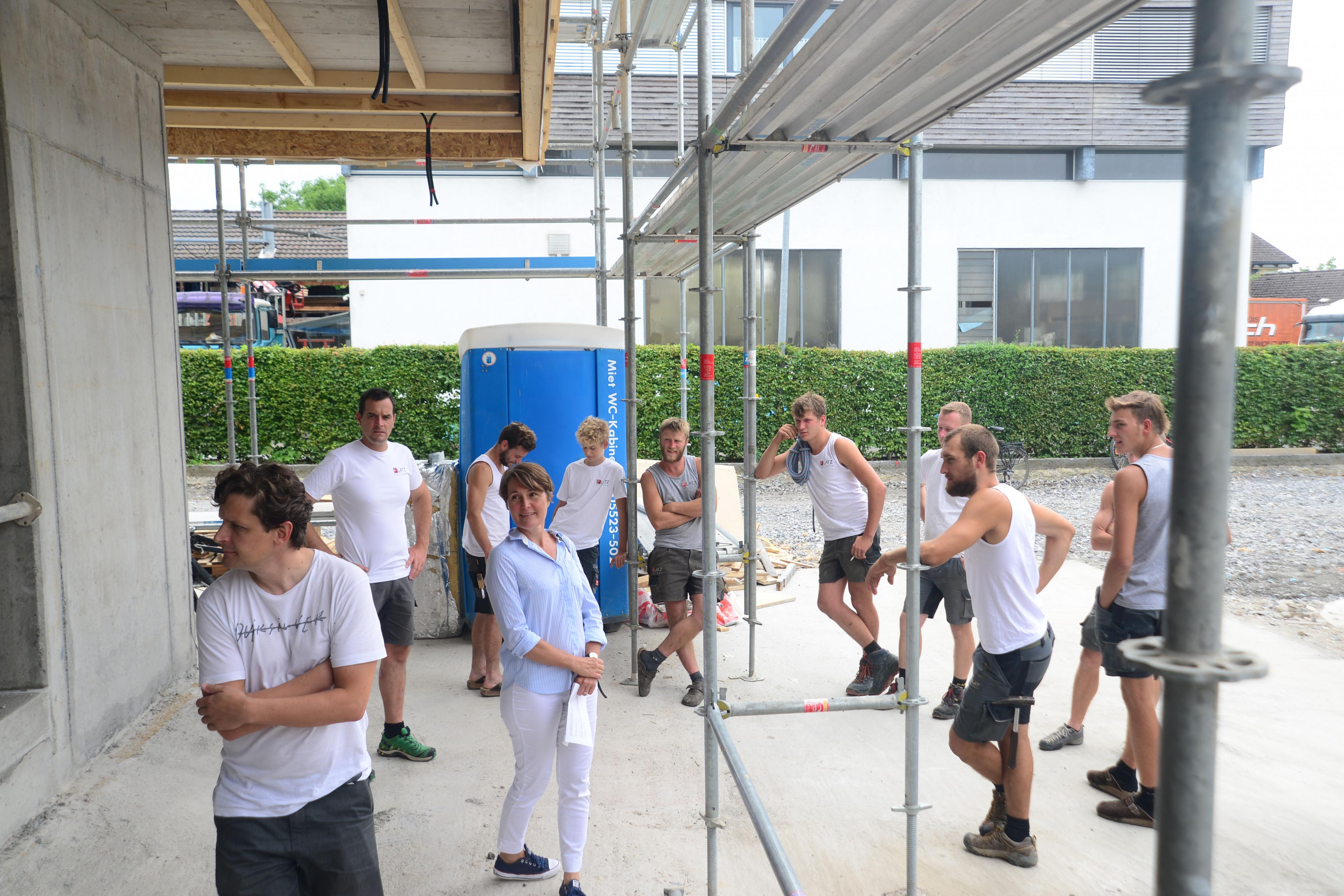 Vizebürgermeisterin Angelika Moosbrugger mit dem Firstbaumtrupp.