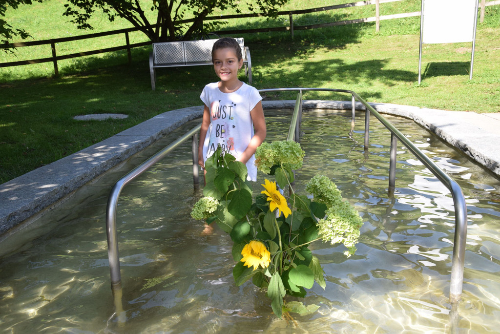 Maria-Luisa Erhard (8 Jahre) genießt die Abkühlung im Kneippbecken