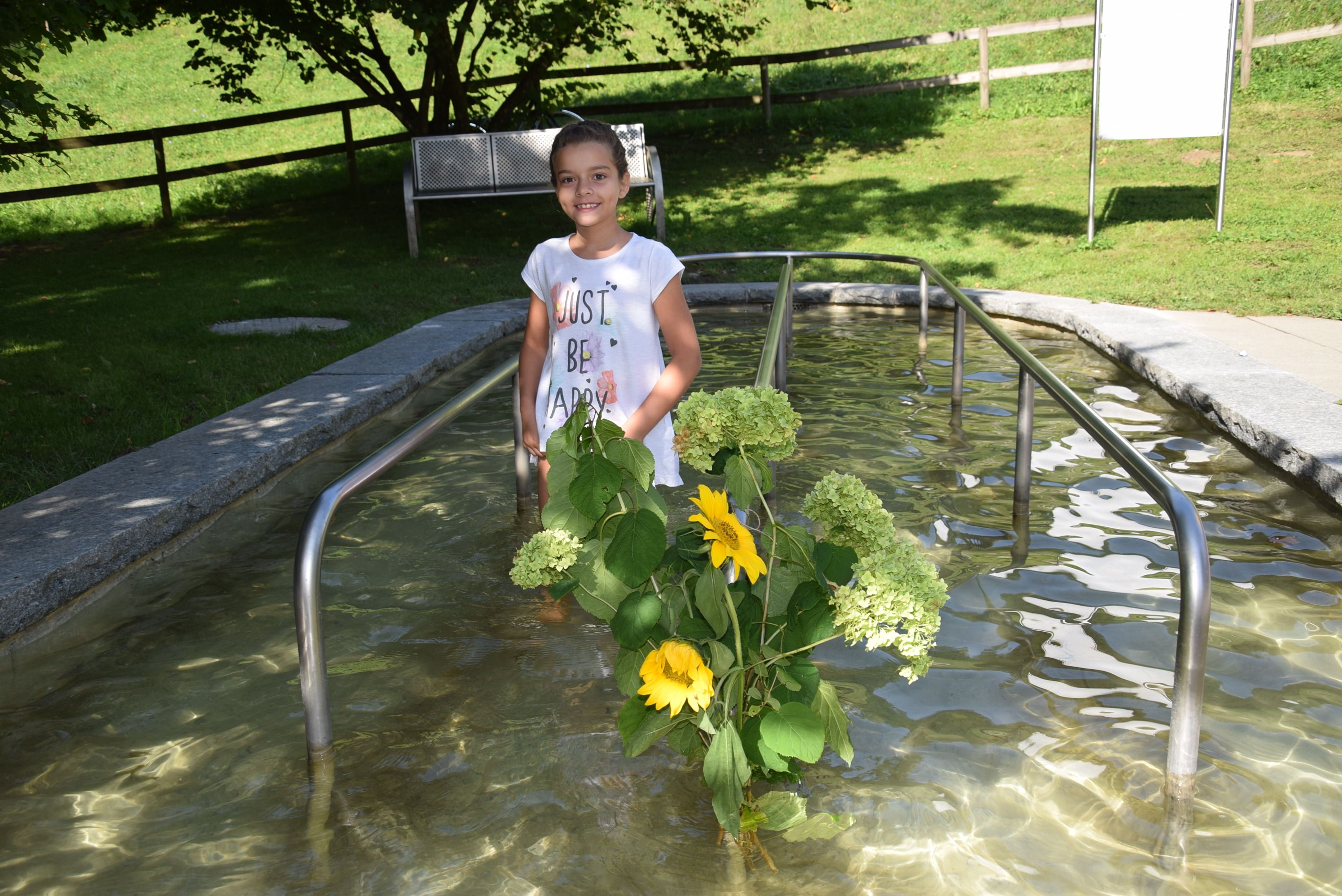 Maria-Luisa Erhard (8) kühlte sich in der Wassertrete ab