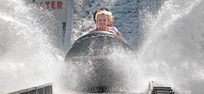 Bei hochsommerlichen Temperaturen verschaffen sich Besucher des Wiener Praters beim sogenannten "Donau Jump" eine Abkühlung.