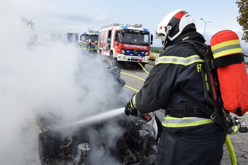 Pkw-Vollbrand auf Autobahnrastplatz in NÖ