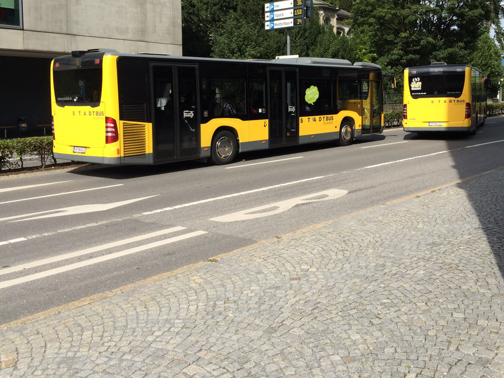 Zwei Stadtbusse nach der Abfahrt.