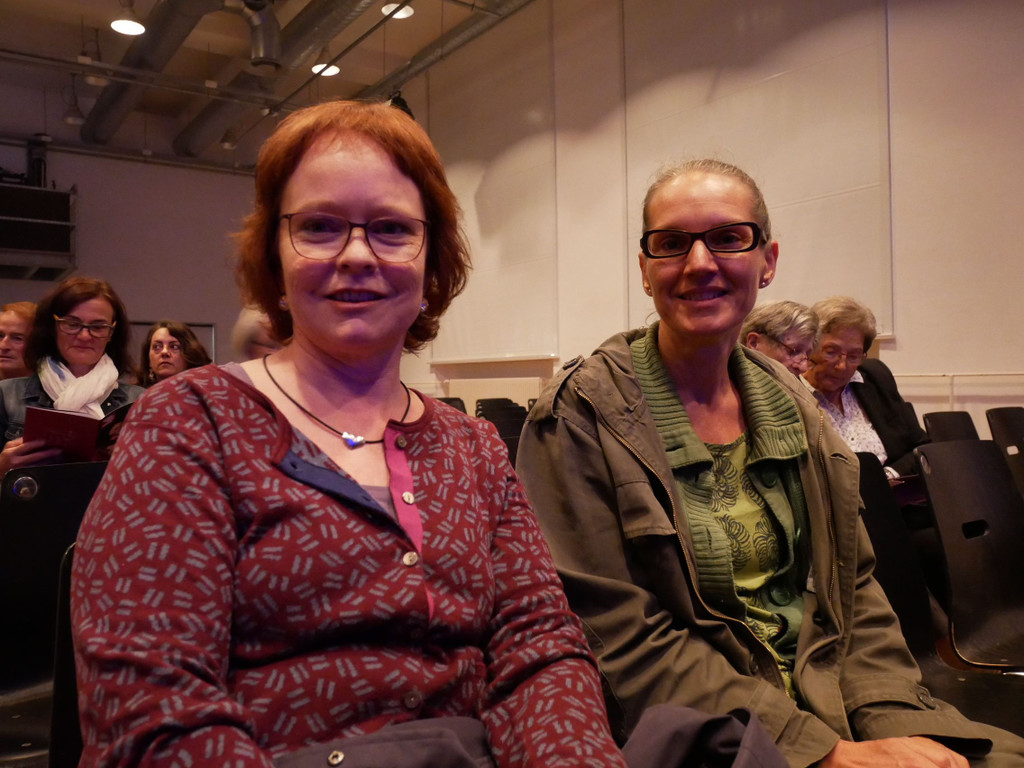 Monika und Michaela vor der Aufführung im Pförtnerhaus.