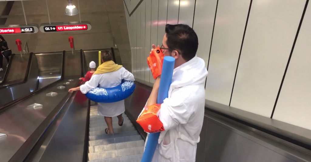 Anreise im Badeoutfit: Gäste der Wiener Therme sorgen für Spaß in der U-Bahn