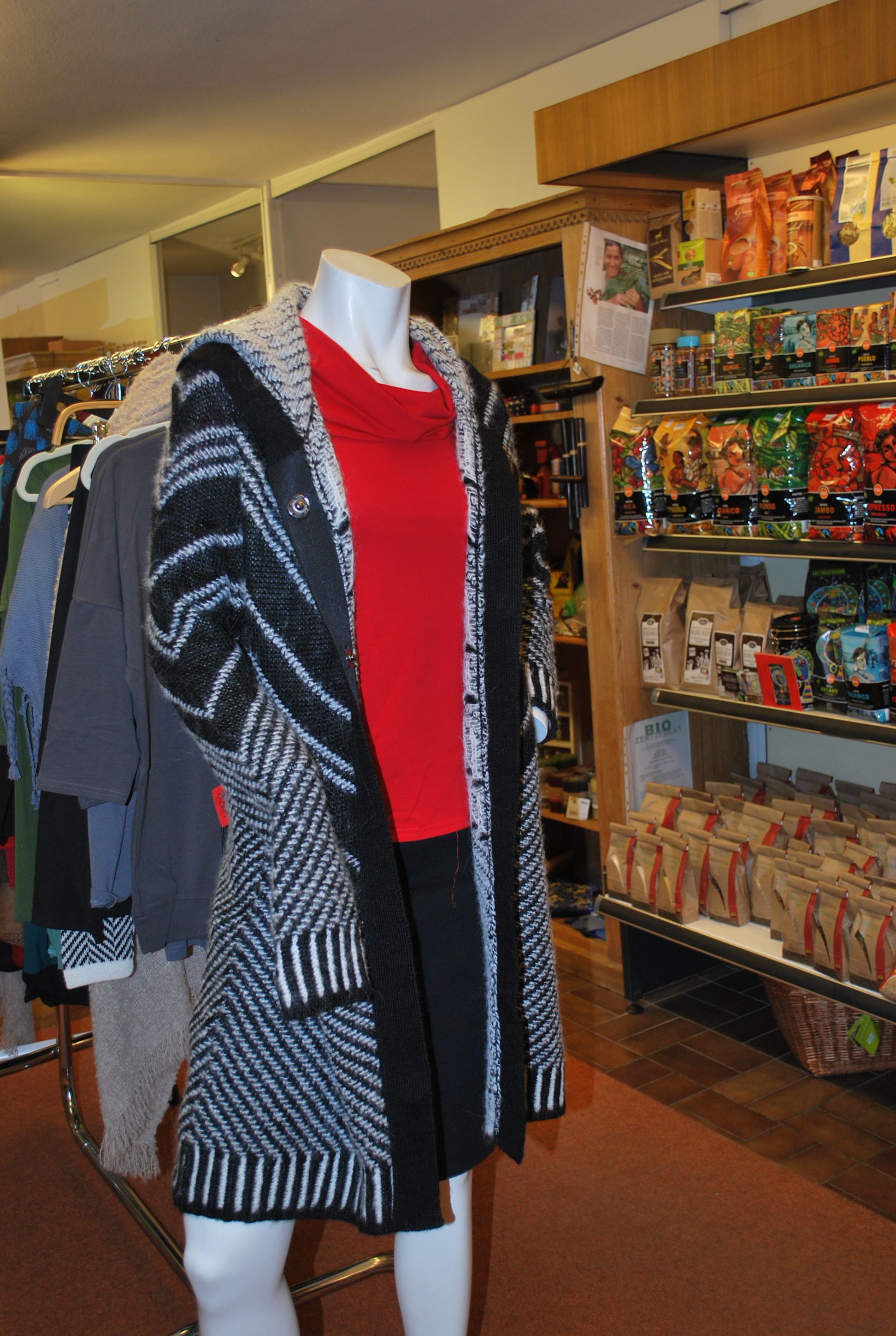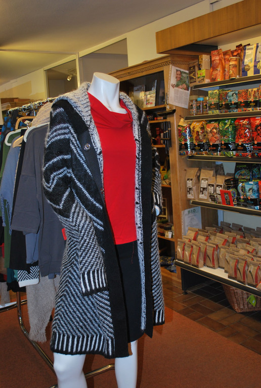 Modische Kleidung im Weltladen, dem Fachgeschäft für fairen Handel.