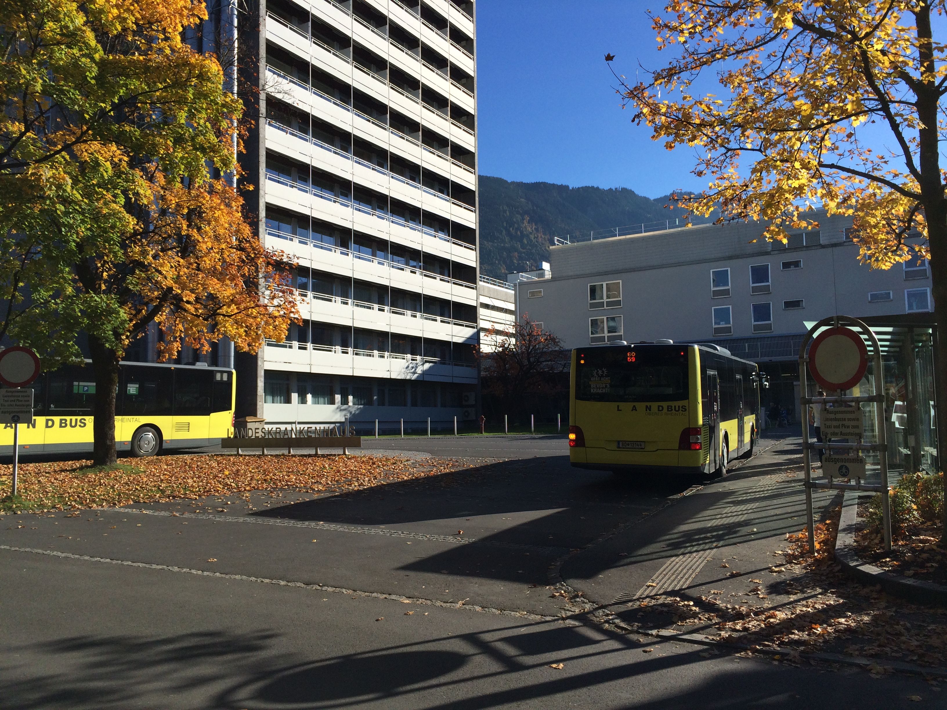 Ein Landbus fährt vom LKH ab.