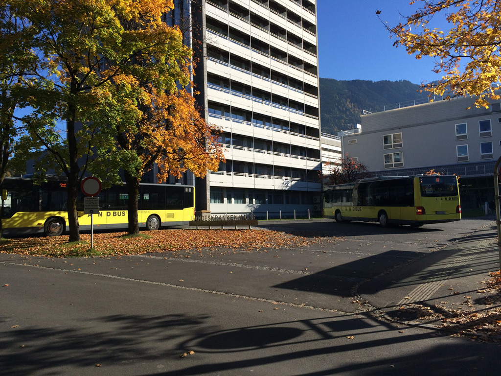 Ein Landbus fährt ums Rondell beim LKH.