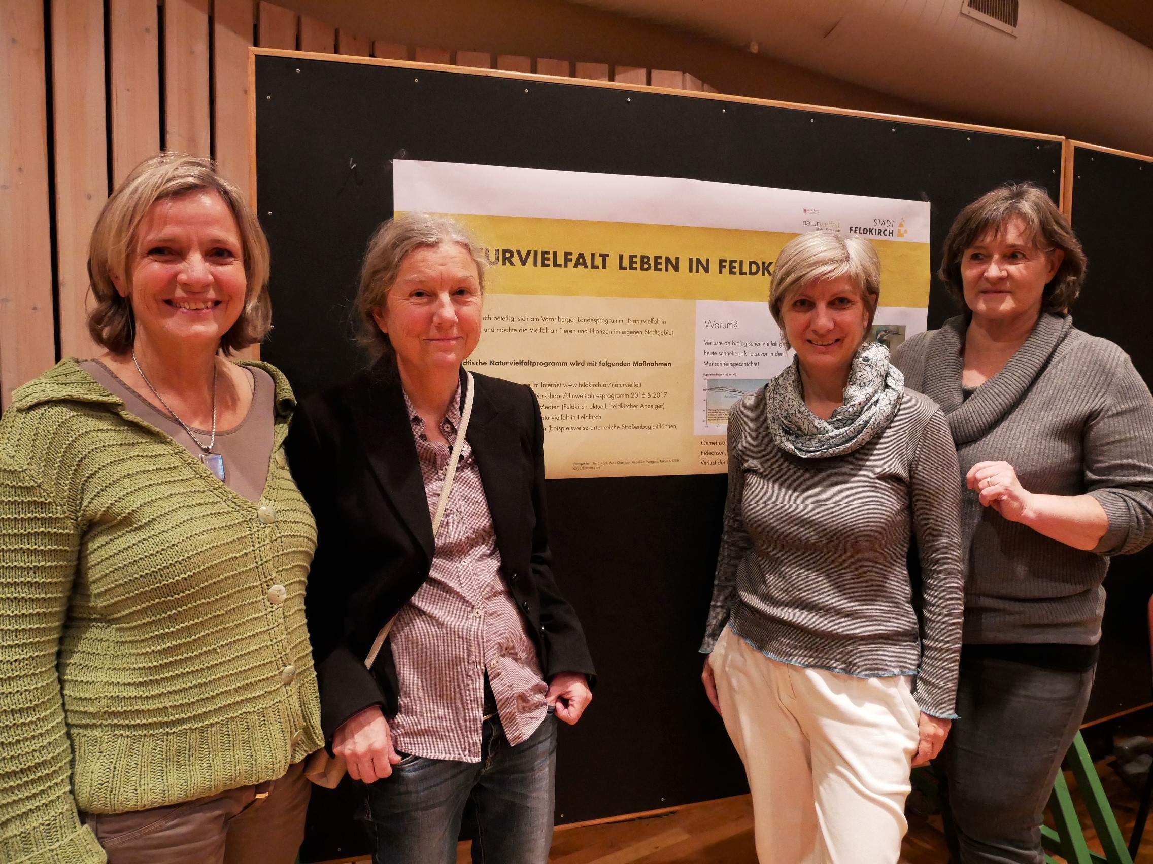 Die Verantwortliche für das Landesprogramm Naturvielfalt in der Gemeinde Christiane Machold, Leiterin der Abteilung Umwelt der Stadt Feldkirch Claudia Hämmerle, externe Beraterin Katrin Löning und Gabriele Greußing.
