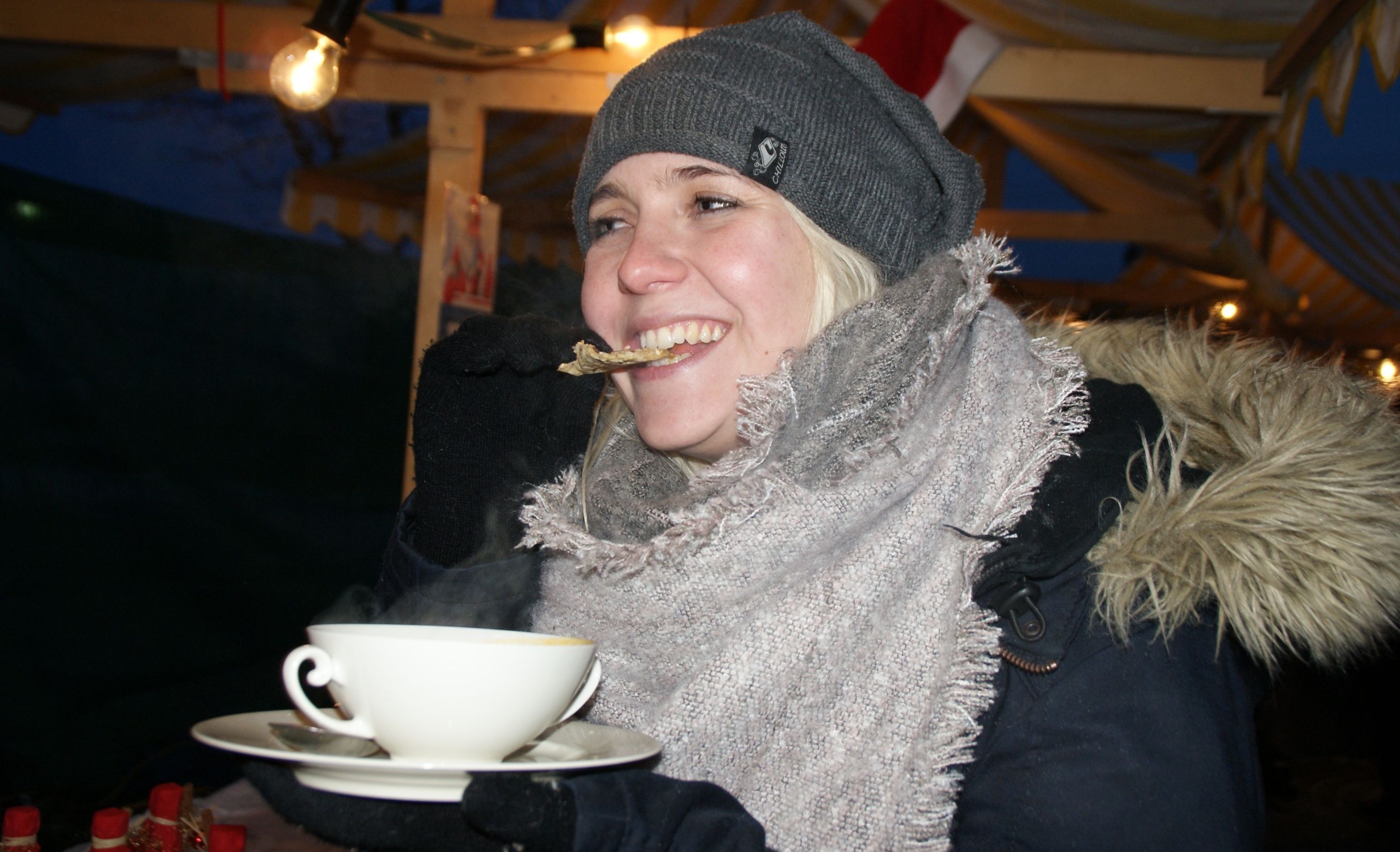 Nadine sicherte sich zum Marktschluss noch eine wärmende Stärkung.