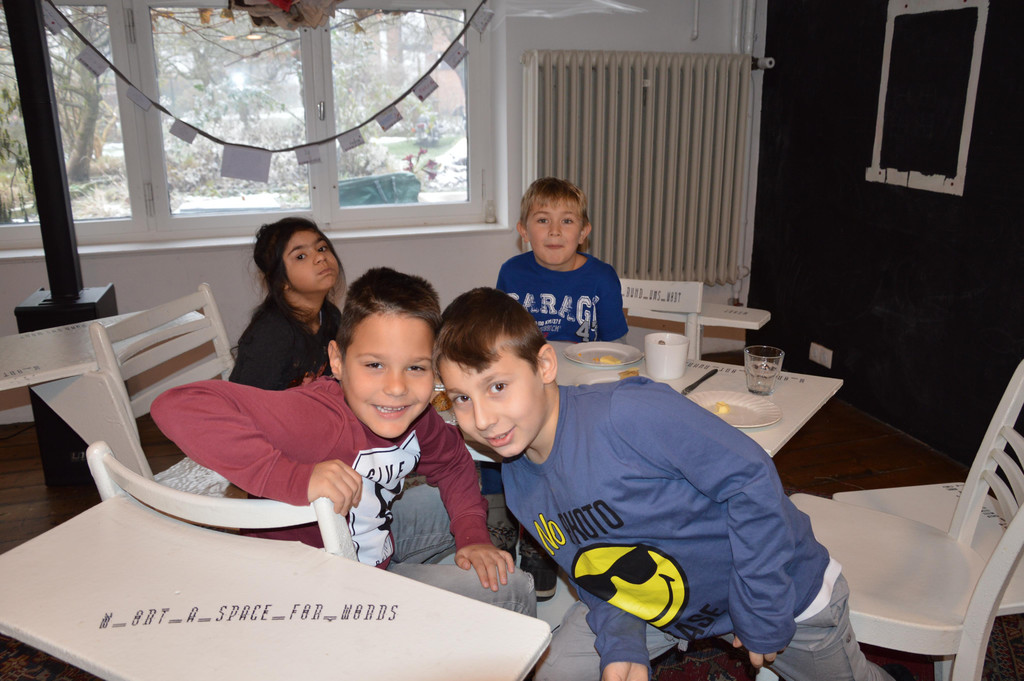 Kinder der Schmetterlingsklasse 1 beim Frühstück