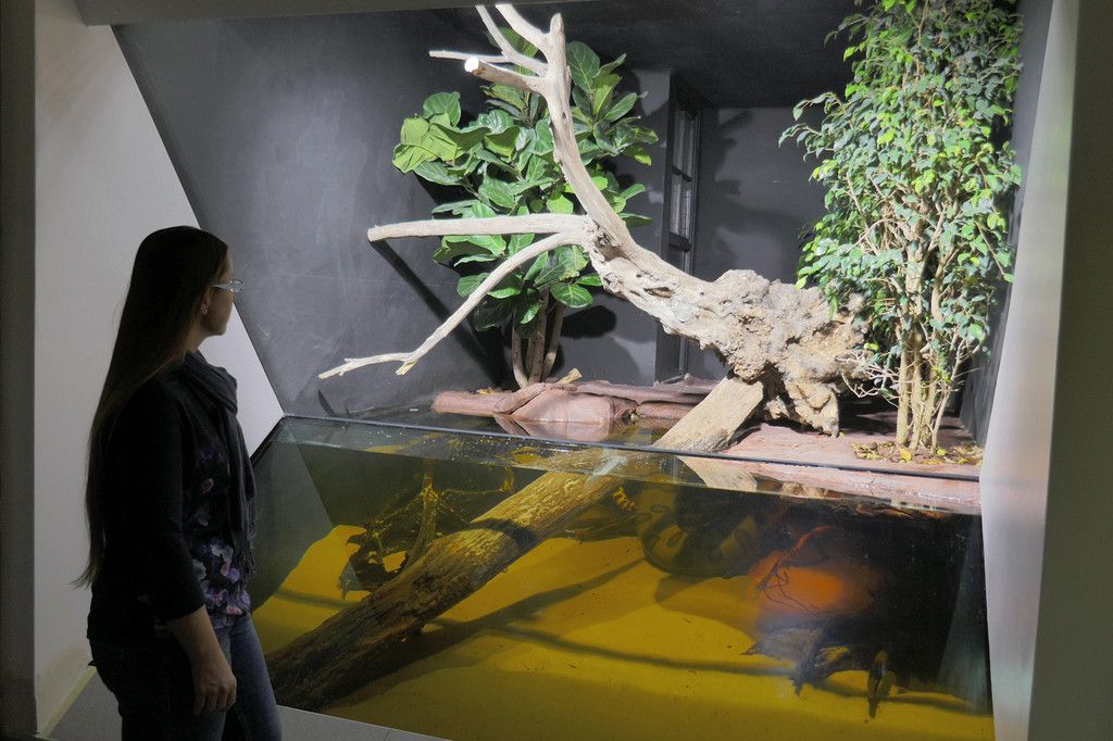 Anakondas bezogen Großraumterrarium im Haus des Meeres in Wien