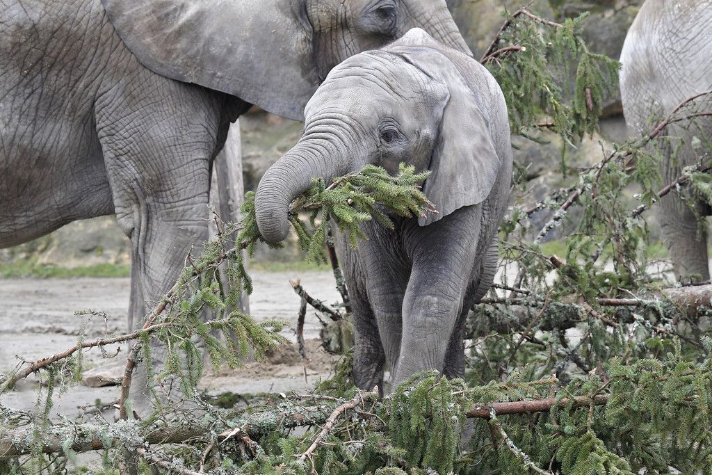 Christbaum wurde schmackhaftes Frühstück für die Elefanten in Schönbrunn