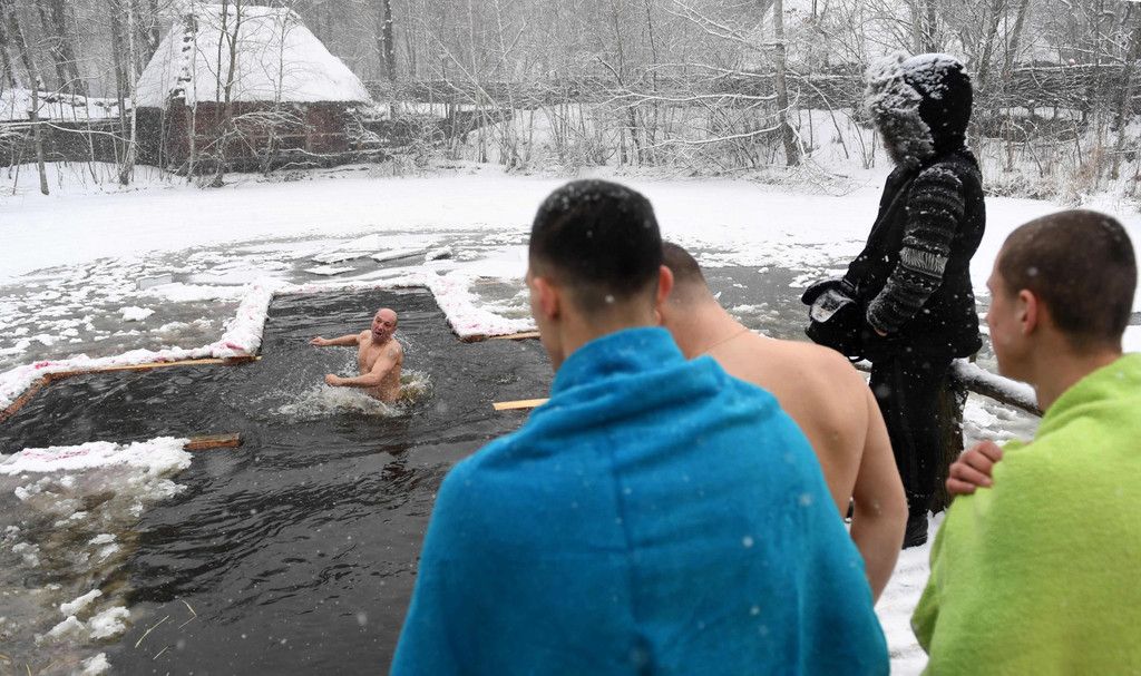 Epiphanias-Fest: Orthodoxe baden in Eiswasser