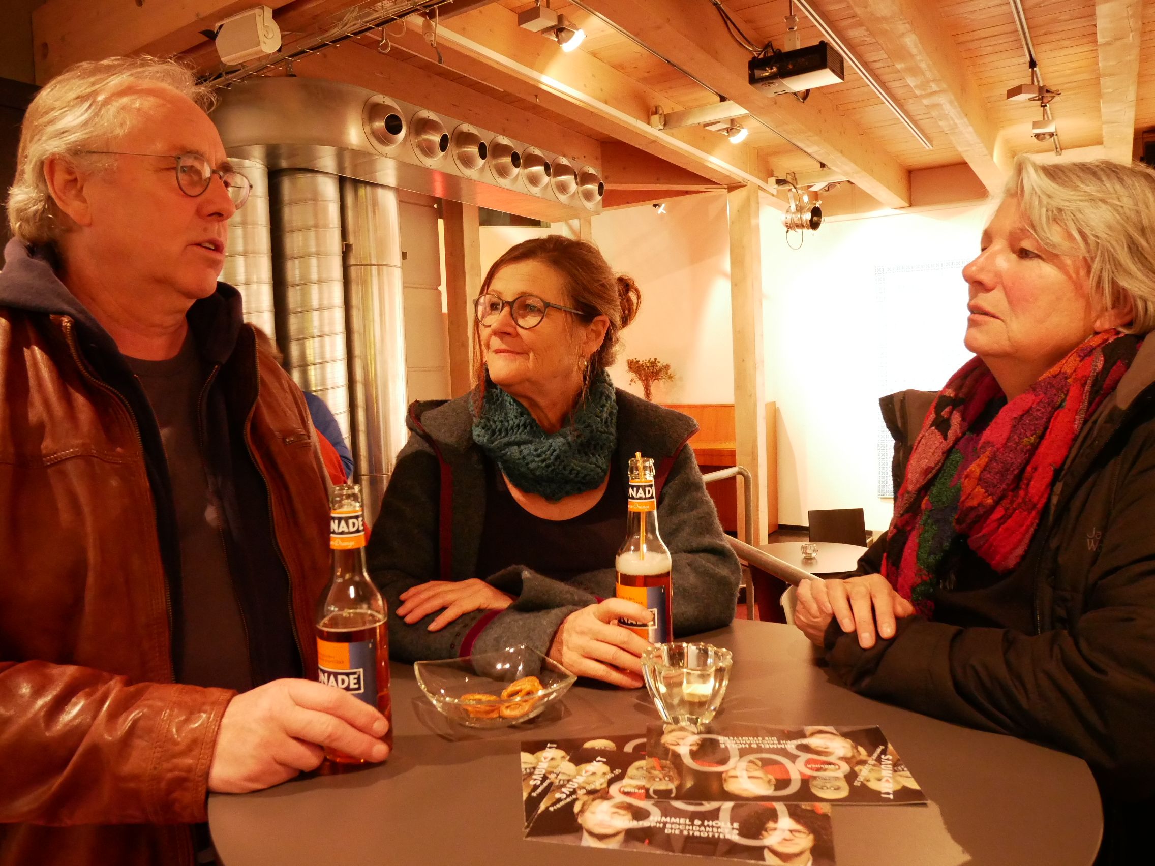 Peter, Helga und Christel unterhielten sich vor der Aufführung.