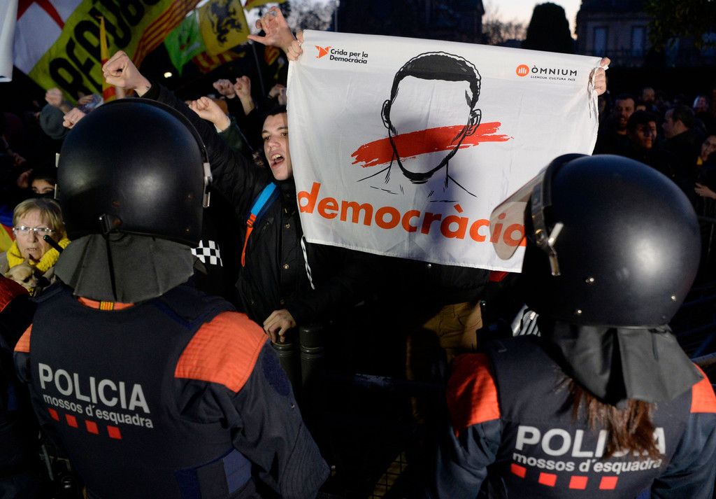 Demonstranten mit Puigdemont-Masken