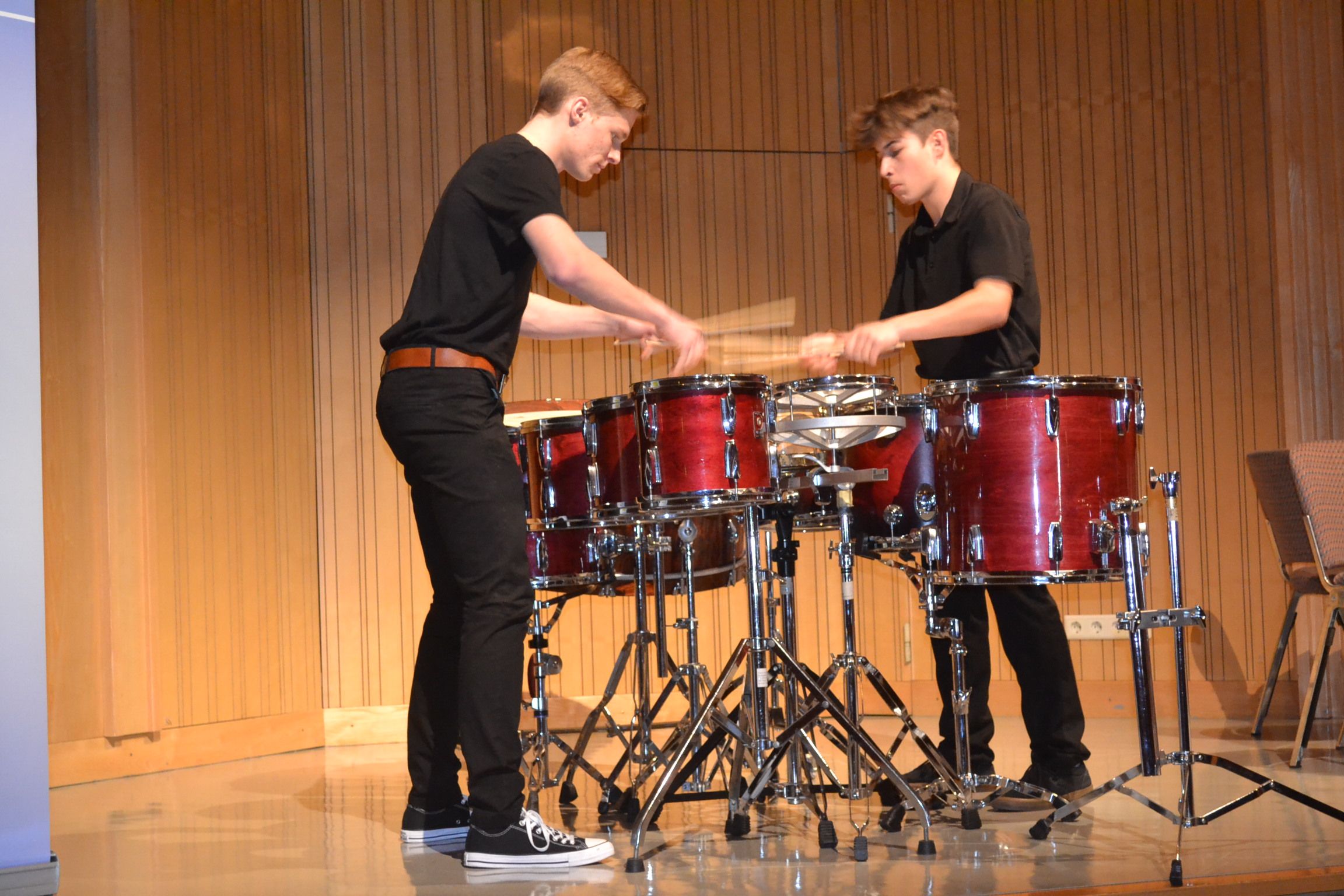 Felix Burtscher und Steven Moser begeisterten als Schlagzeugensemble „SCHLAGanFALL“.