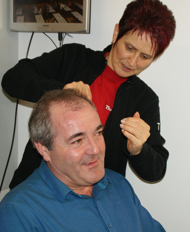 Lothar Gunz wird für die Bühne „fit“ gemacht.