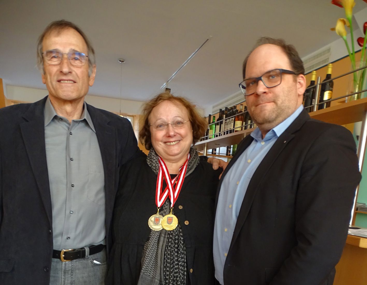 Helene Mira mit dem Turnier-Organisator Erich Peterlunger und Dr. PhilippLängle, dem Präsidenteb des Vlbg. Schachverbandes (r.)