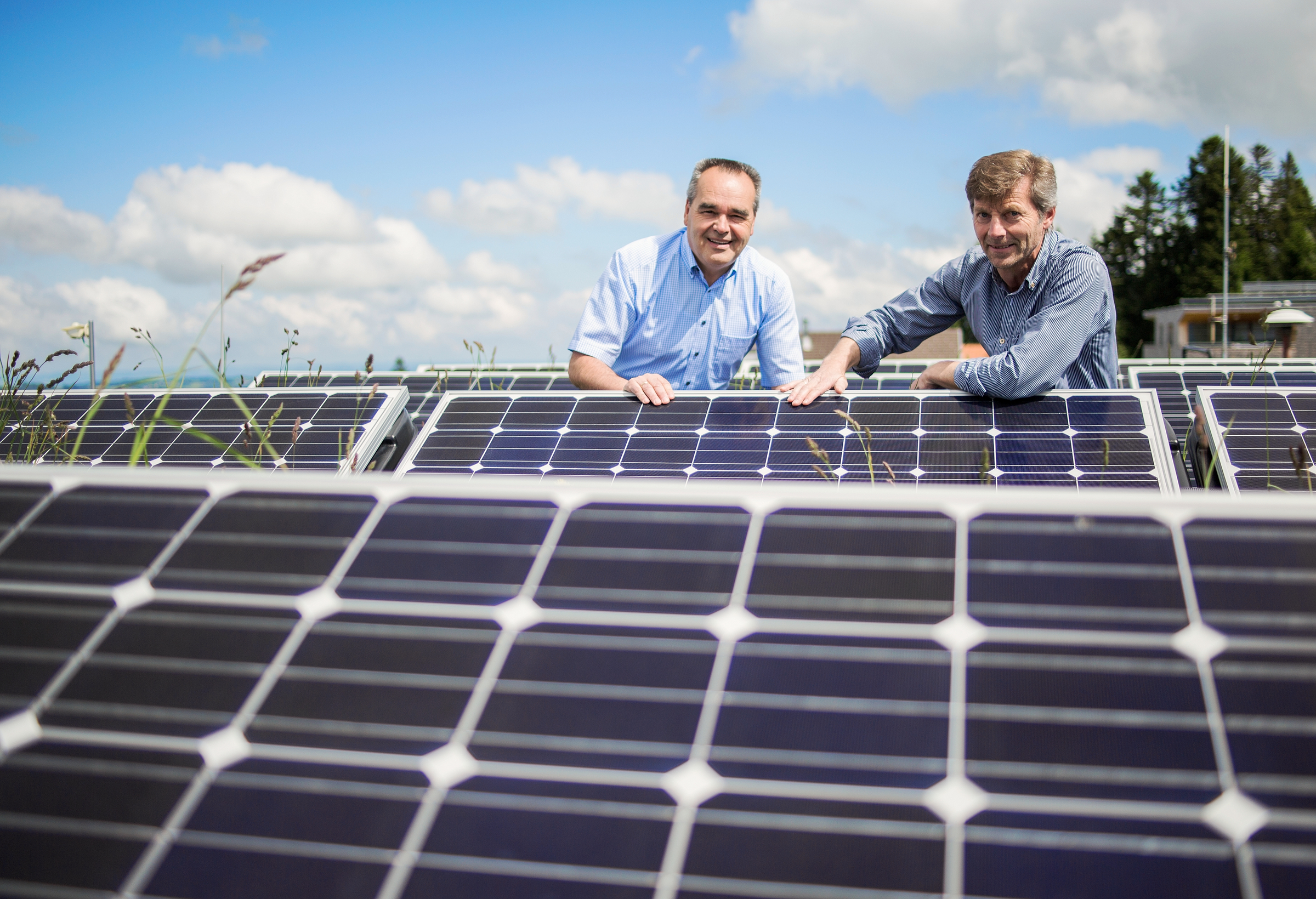 Bürgermeister Helmut Blank und Gemeindesekretär Erwin Steurersind stolz auf die gemeindeeigenen PV-Anlagen.