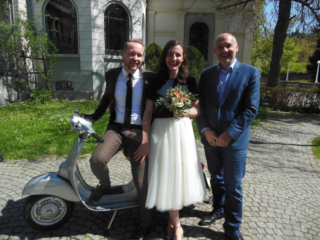 Die frisch Vermählten mit dem Bürgermeister.