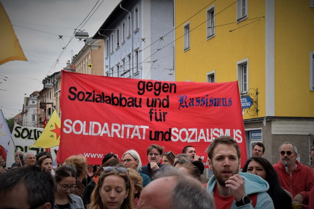1.-Mai-Demo zieht durch Stadt Salzburg