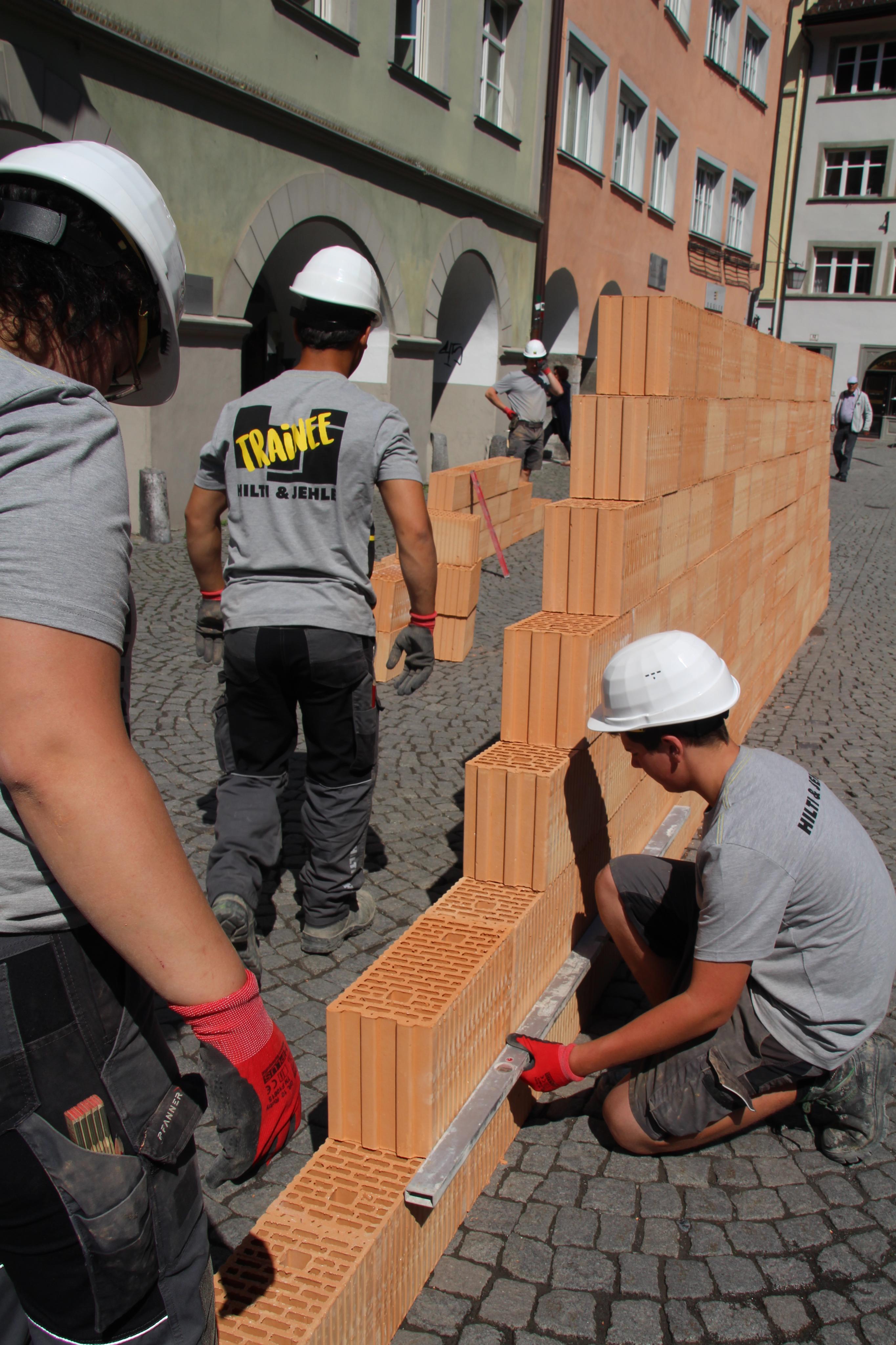 Wandernde Mauer als Performance in der Marktgasse