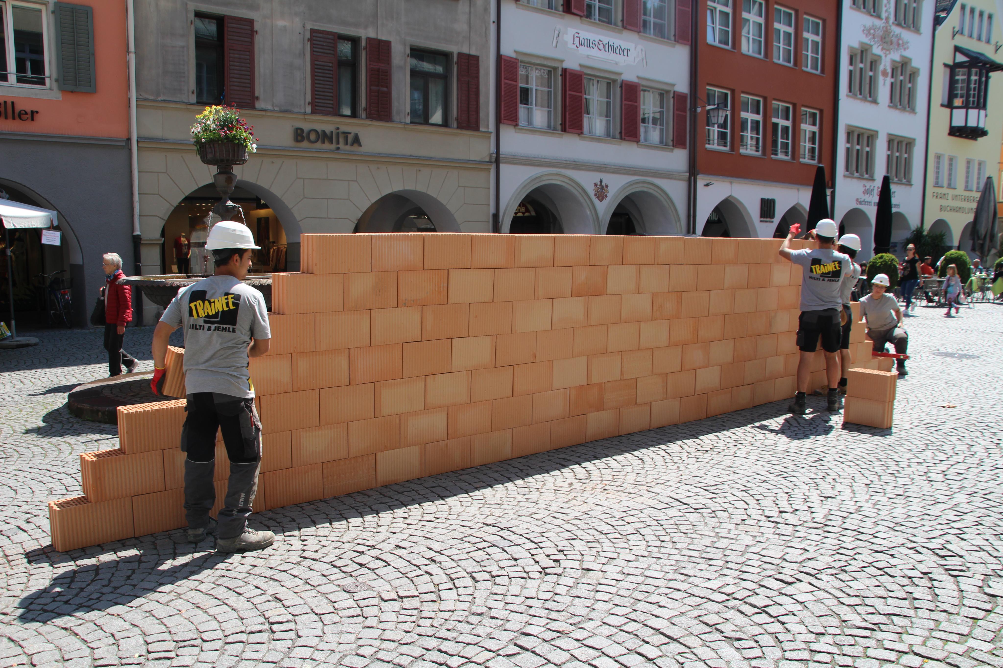 Wandernde Mauer als Performance in der Marktgasse