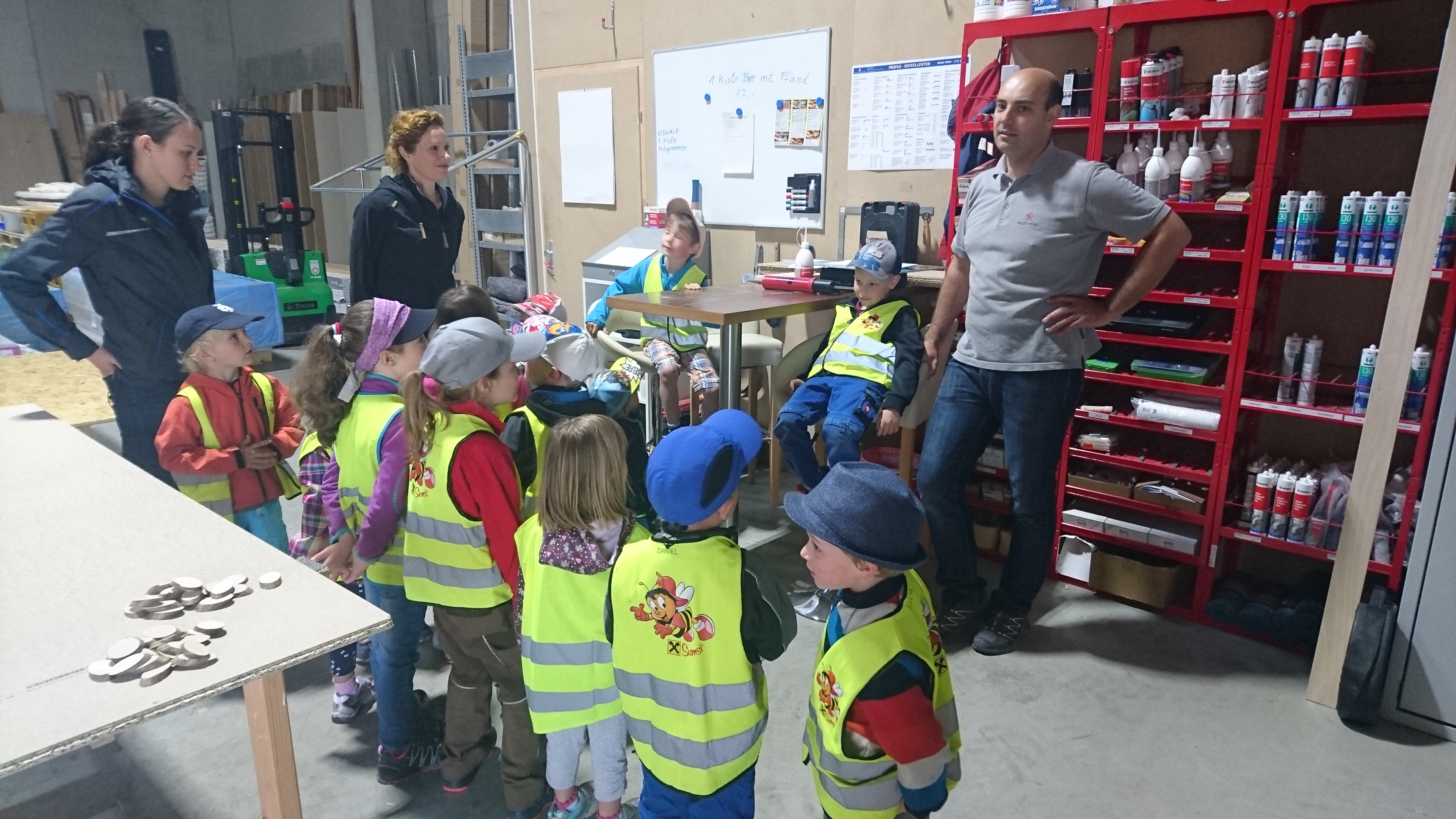 Kindergarten Übersaxen zu Besuch bei der Firma Weiler Möbel