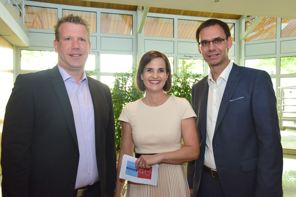 Direktor Christian Mathis, Moderatorin Martina Ess und Landeshauptmann Markus Wallner.