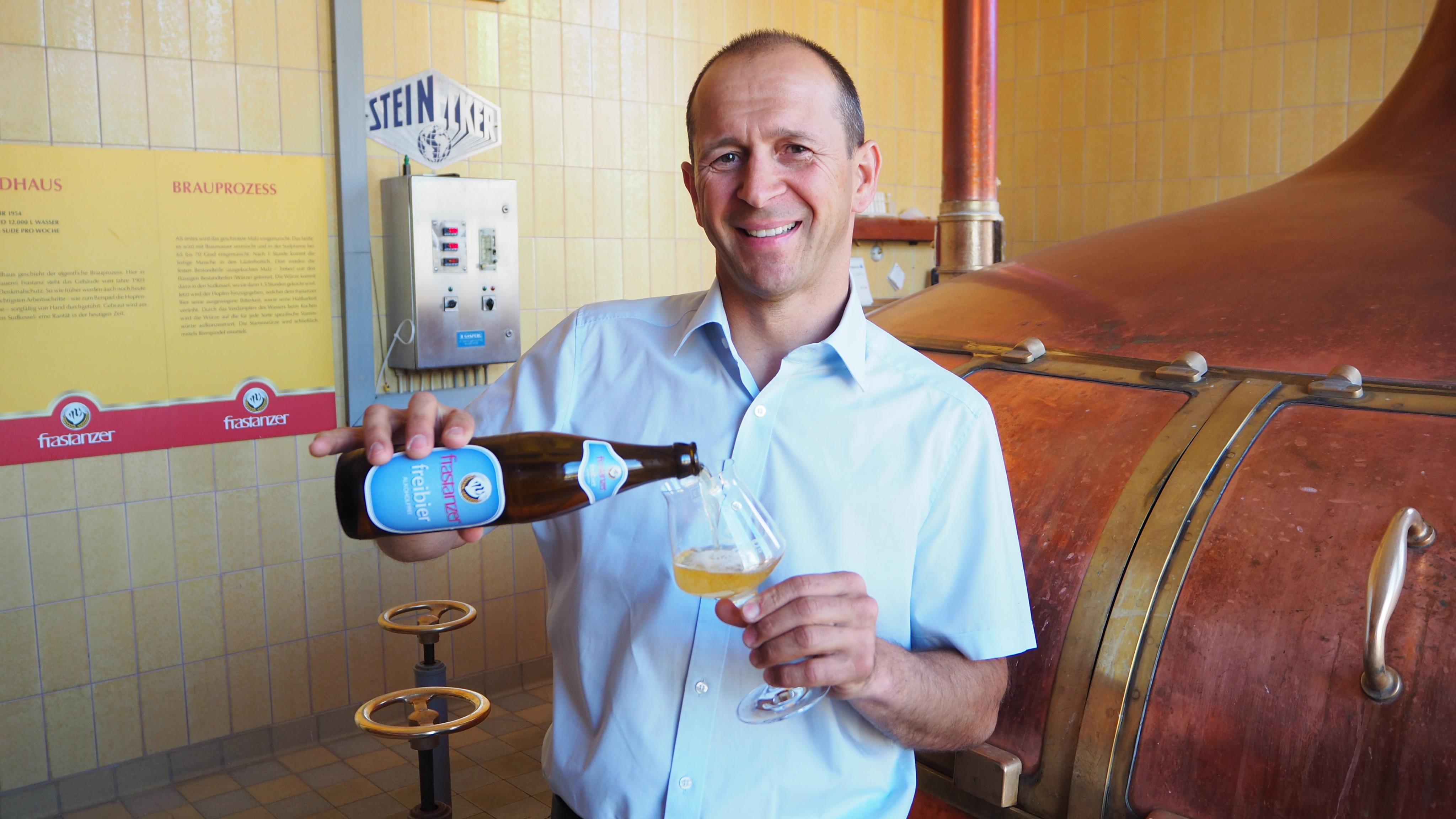 Geschäftsführer Kurt Michelini mit dem neuen Freibier