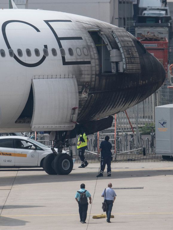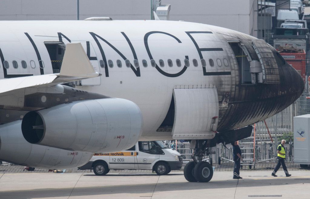Flieger fängt Feuer am Frankfurter Flughafen