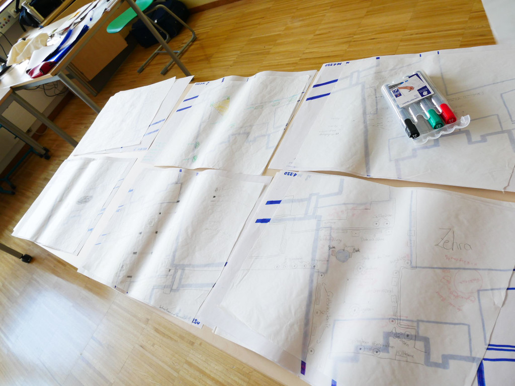 Im Laufe der vorherigen Workshops waren Ideen gesammelt und auf Pläne übertragen worden.