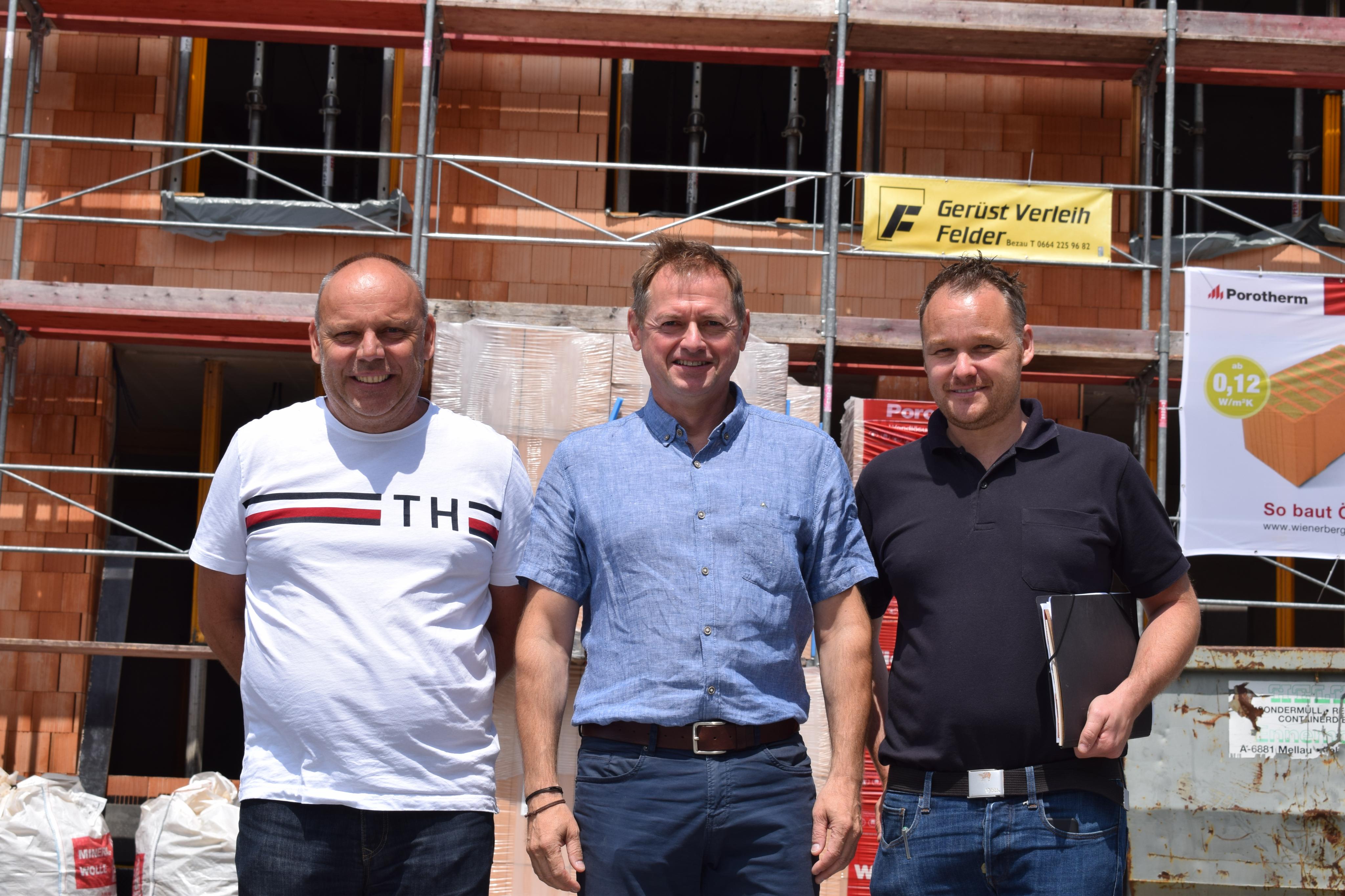 Baustellenbesichtigung: Hartwig Maier und GF Georg Posch (aks) sowie Architekt Jürgen Stoppel.