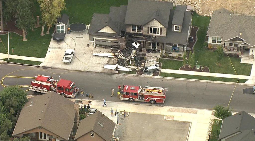Mann steuert Flugzeug in Haus