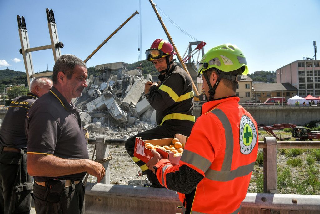 Autobahnbrücke stürzt in Genua ein: Aufräumen