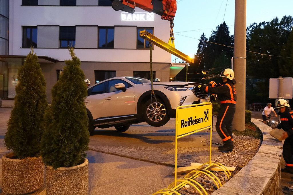 Pkw kracht über Steinmauer