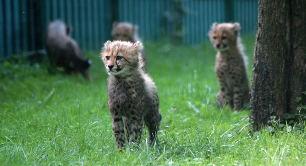 Gepardennachwuchs erkundet Zoo