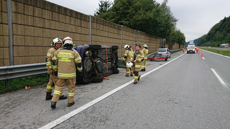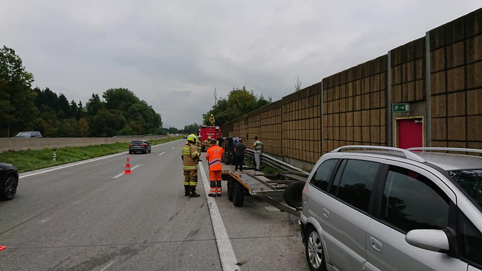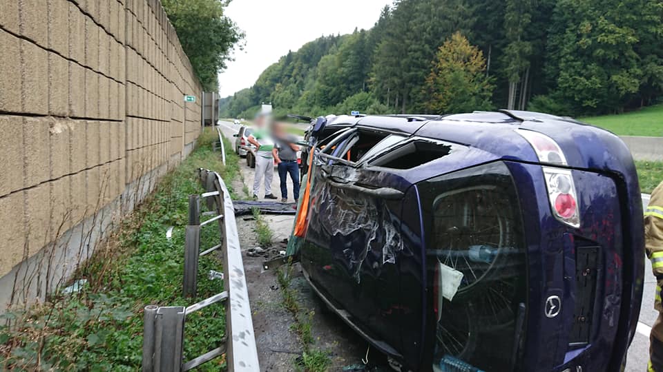 Anhängergespann überschlägt sich auf A1