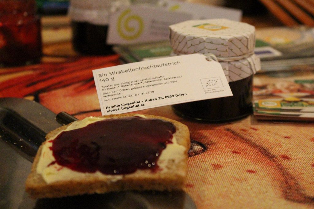 Als Stärkung gabs Bio Brot mit Mirabellenmarmelade.