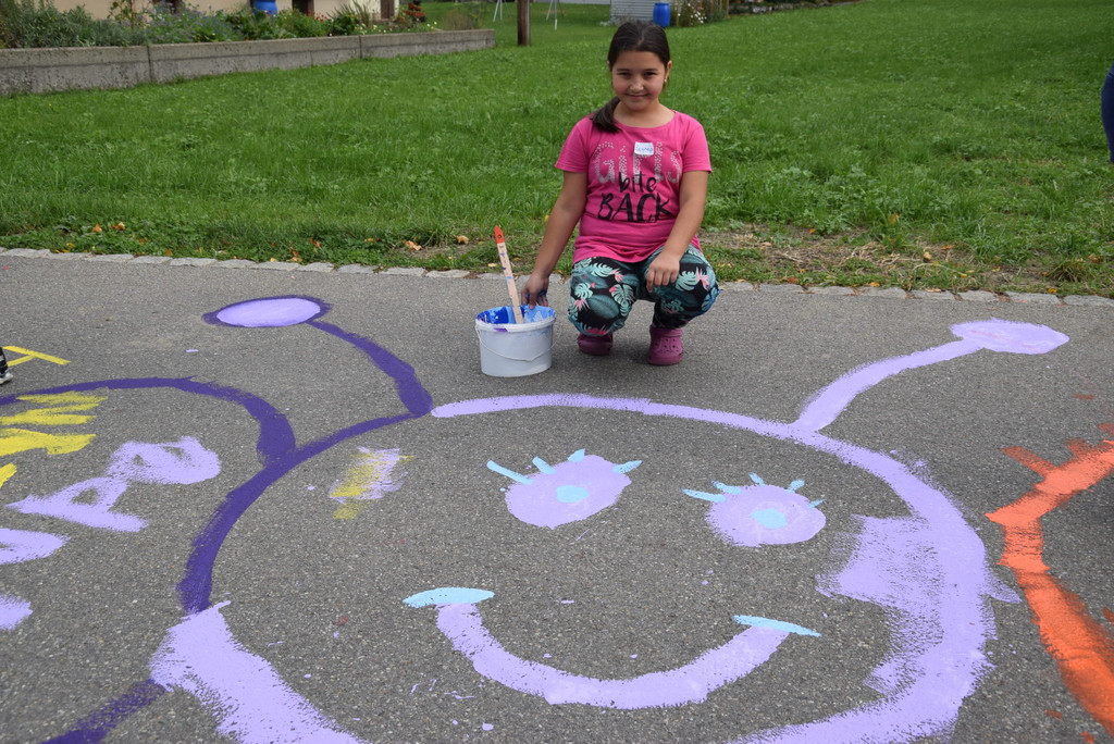 Straßenmalaktion vor der VS Blattur
