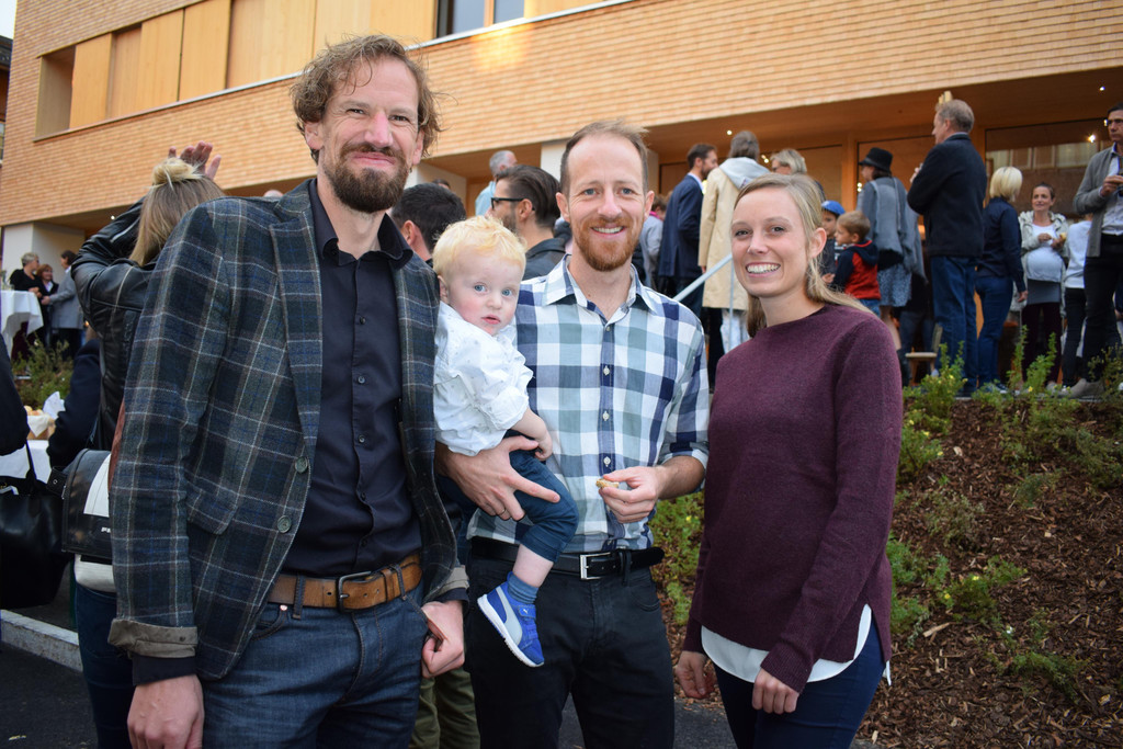 Architekt Georg Bechter, Andreas Fetz mit Pius sowie Teresa Rädler.