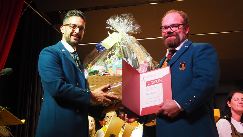 Obmann Simon Thöni mit Jubilar Martin Halbeisen