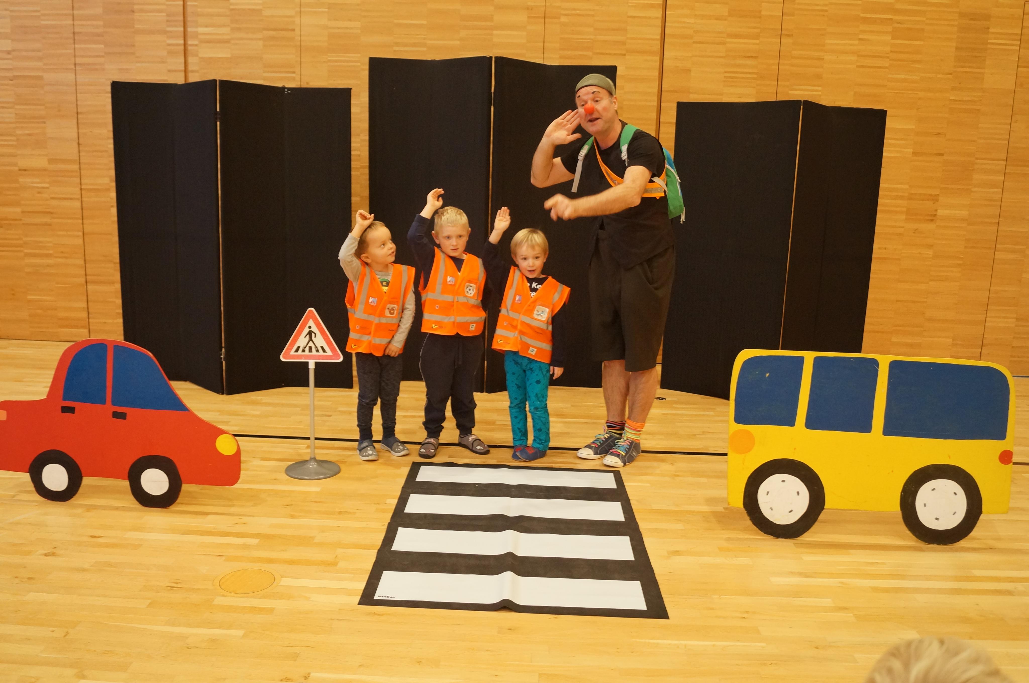 Verkehrsclown im Kindergarten Übersaxen